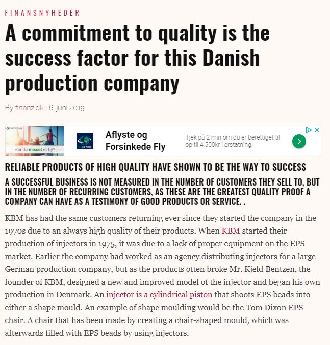 This piece was written as part of a SEO strategy for the company KBM ApS. The aim was to raise awareness of the industry and company, as well as to attract new customers. It was published at Finanz.dk in June 2019 - read it by clicking here.